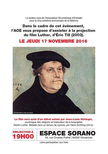 17/11/2016 - film "Luther" d'Éric Till suivi d'un débat avec Jean-Louis Schlegel, sociologue des religions et traducteur de la biographie Martin Luther
