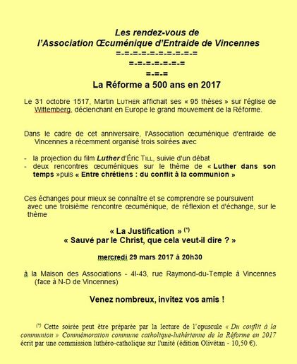 29/03/2017 La Justification, sauvé par le Christ, que cela veut-il dire ?